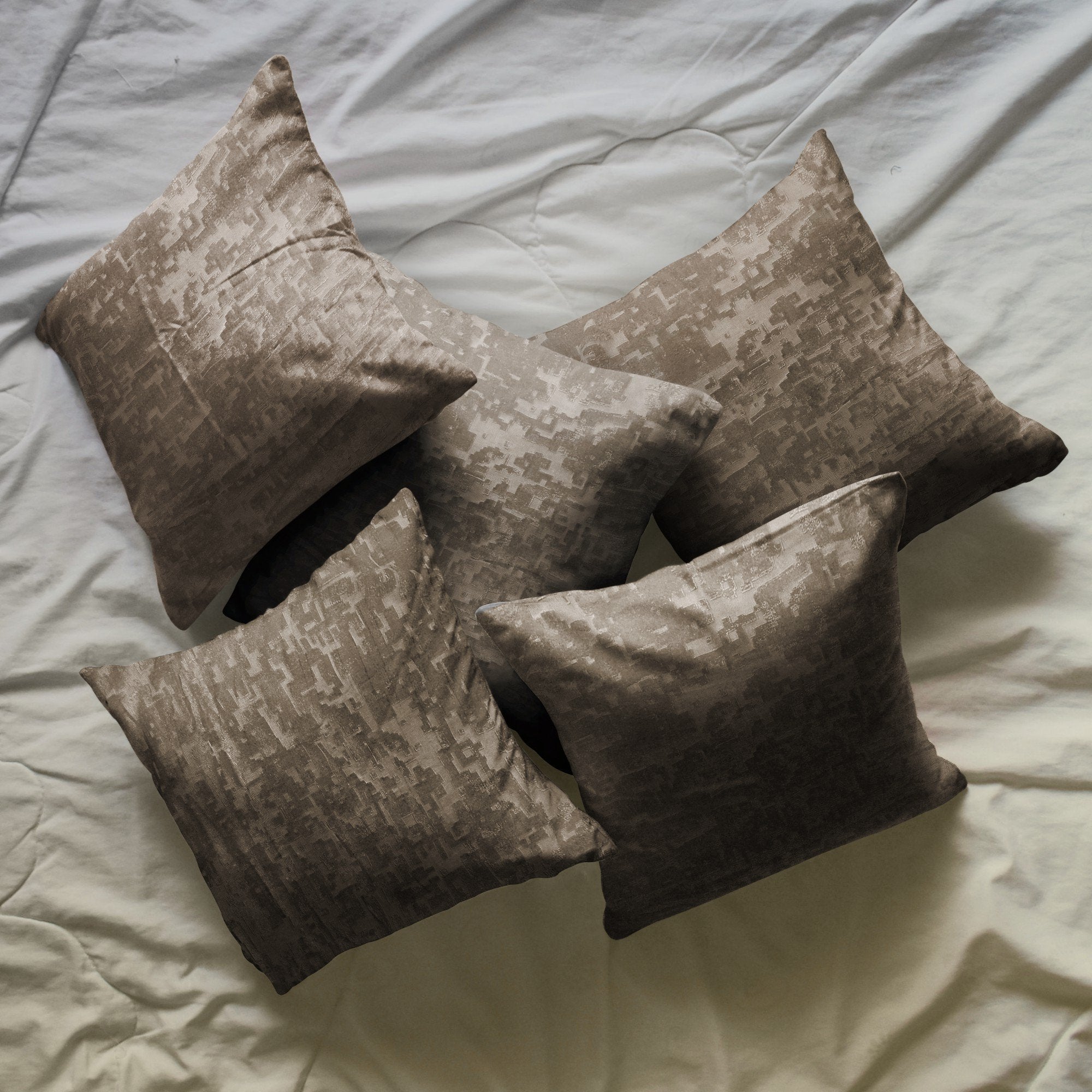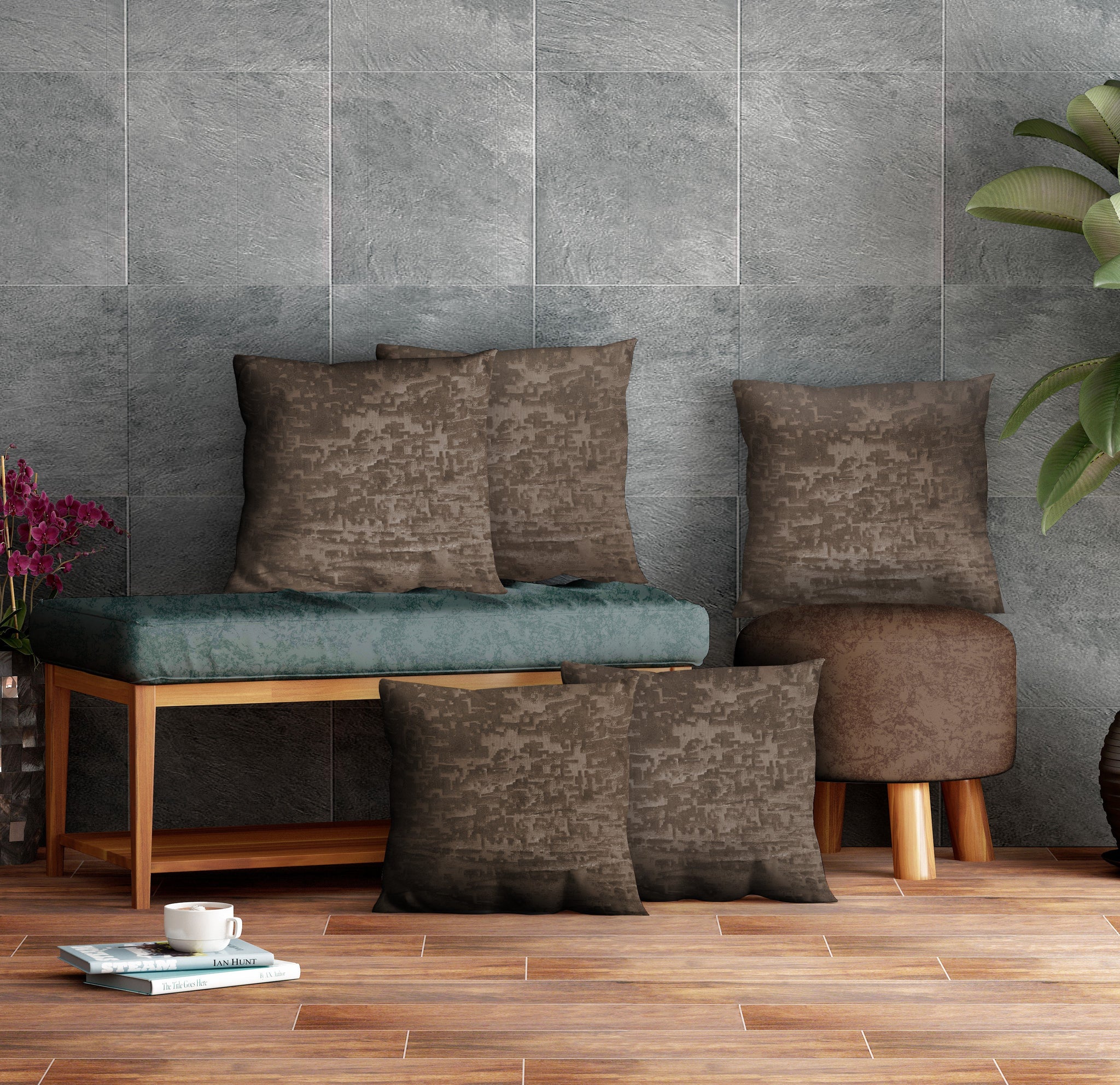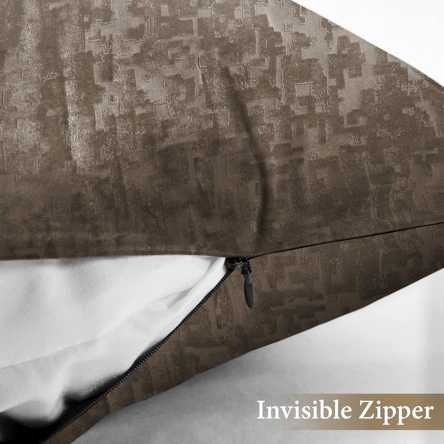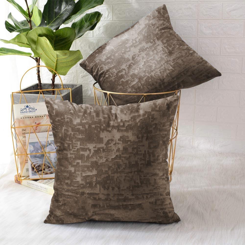 Rayna Decor Jacquard Velvet Cushion Covers for Living Room,16x16 Inches,Set of 5, Smokybrown