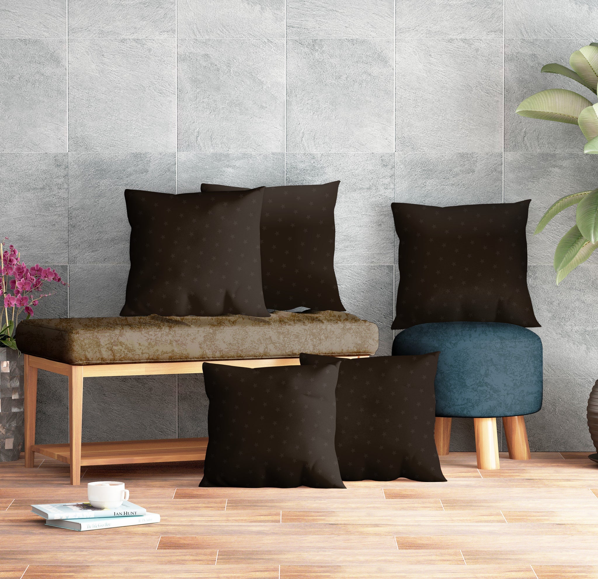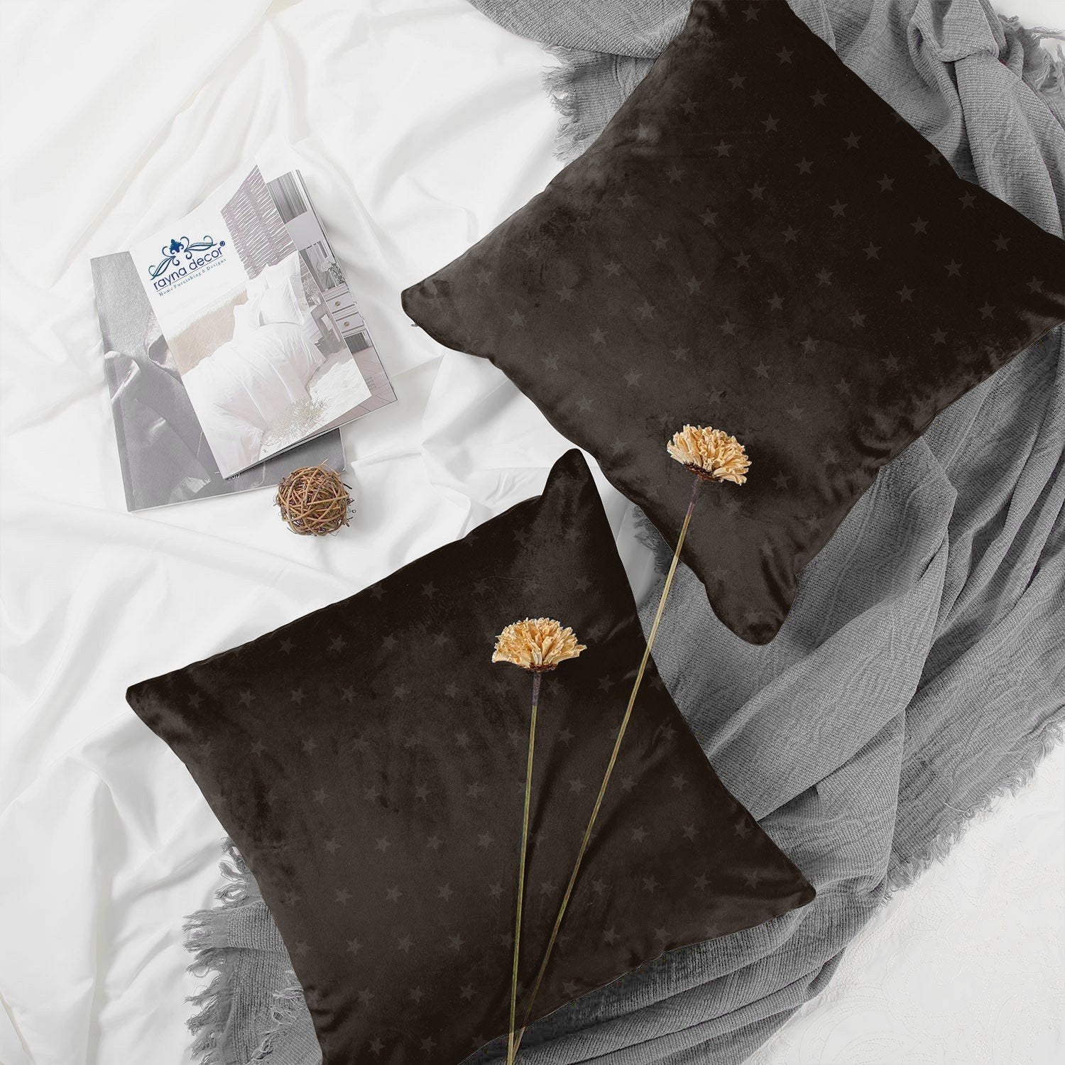 Rayna Decor Polyester Printed Cushion Covers for Living Room,16x16 Inches, Set of 5,Russet Coffee